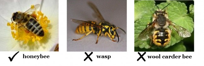 Another new threat to the honeybee is the wool carder bee. This bee is new to New Zealand. It was first discovered in Napier and Nelson in 2006 and since there have been sightings of this bee in Auckland. The wool carder bee is a solitary bee about the size of a honeybee. The female is usually seen foraging but can be seen âcardingâ fibers from plants to use as nest material - hence the name. It is very visible with its bright yellow colour. The male wool carder bee is extremely territorial and will defend the floral resources by attacking the visiting honeybees. The males have 5 sharp spines on their abdomen that are used to attack.